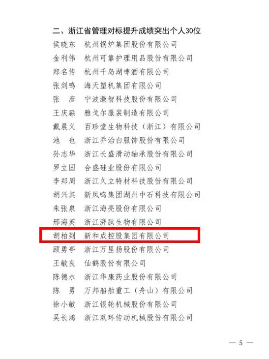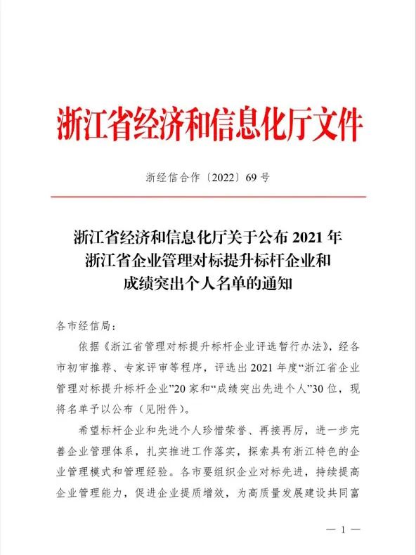 近日,浙江省經(jīng)濟和信息化廳公布2021年浙江省企業(yè)管理對標提升標桿企業(yè)和成績(jì)突出個(gè)人名單。集團公司黨委書(shū)記胡柏剡老師榮獲“企業(yè)管理對標提升成績(jì)突出個(gè)人”稱(chēng)號,這不僅是對胡柏剡老師在推進(jìn)企業(yè)高質(zhì)量發(fā)展方面做出突出貢獻的嘉獎,也是對新和成發(fā)展成果的肯定。 助力高質(zhì)量發(fā)展建設共同富裕示范區和打造全球先進(jìn)制造業(yè)基地是公司的光榮使命和責任。在“老師文化”的引領(lǐng)下,公司始終秉承開(kāi)放思想、對標學(xué)習的態(tài)度,堅持面向全球市場(chǎng)、整合全球資源,向優(yōu)秀學(xué)習。公司與殼牌合作,引進(jìn)先進(jìn)的HSE管理體系,努力實(shí)現本質(zhì)安全;在產(chǎn)業(yè)鏈上,與閏土、荷蘭DSM、日本東洋紡合作等企業(yè)優(yōu)勢互補,合作共贏(yíng),提升創(chuàng )新鏈、價(jià)值鏈,聚焦聚力增強競爭力、高質(zhì)量發(fā)展。 作為一家創(chuàng )新型企業(yè),集團公司積極尋求管理創(chuàng )新之道,追求管理高效率,實(shí)現經(jīng)濟高效益。以目標為導向、問(wèn)題為導向,公司每年開(kāi)展管理創(chuàng )新課題申報、評比表彰工作,并踐行反思文化,開(kāi)展批評與自我批評,激發(fā)員工創(chuàng )新活力,解決管理中存在的主要問(wèn)題和薄弱環(huán)節,不斷加強管理體系和管理能力現代化建設,持續推動(dòng)質(zhì)量變革、效率變革、流程變革,為公司實(shí)現高質(zhì)量發(fā)展、成為國際一流企業(yè)增添不竭動(dòng)能。 管理提升是企業(yè)發(fā)展的永恒主題,是企業(yè)實(shí)現基業(yè)長(cháng)青的重要保障。朝著(zhù)“中國新和成,世界新和成”的愿景目標,公司將堅持對標世界一流企業(yè),加強精益化管理,持續優(yōu)化產(chǎn)業(yè)布局,在高質(zhì)量發(fā)展中奏響共同富裕的強音。