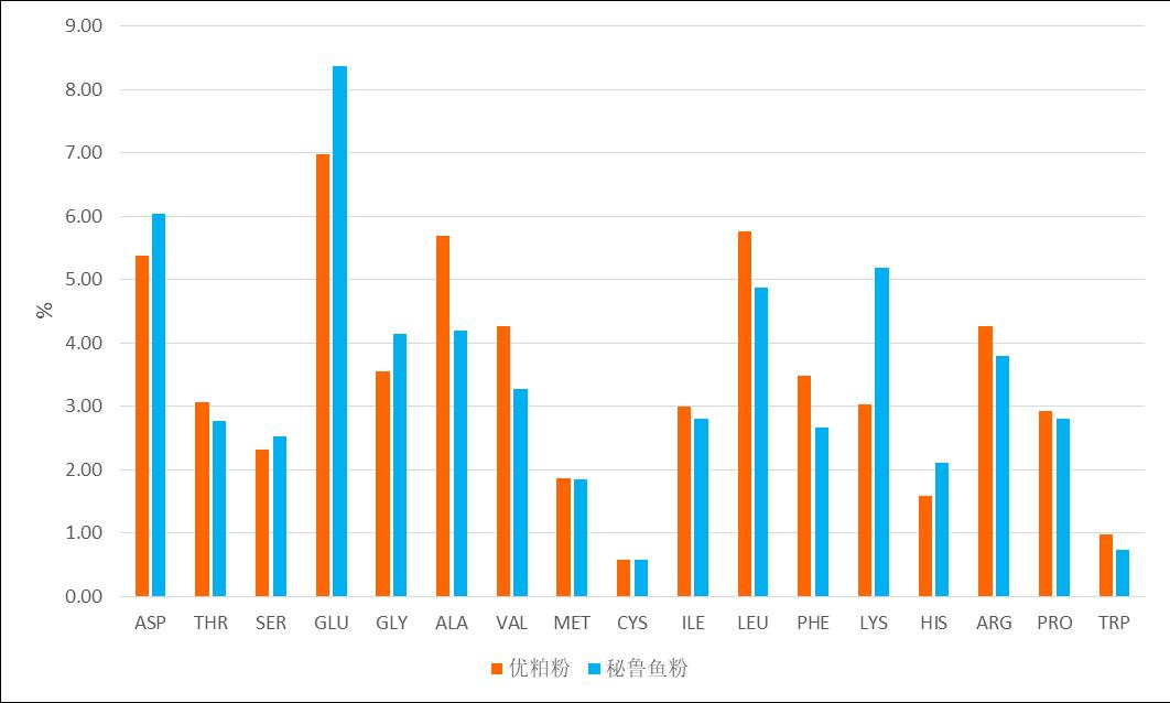 優(yōu)粕粉和魚(yú)粉的氨基酸組成比較(以92% 干物質(zhì)計)