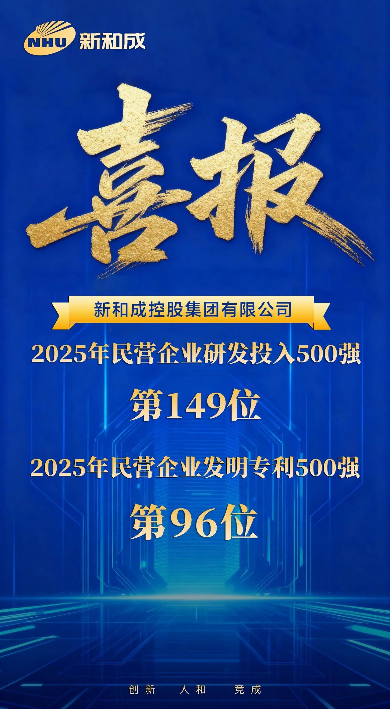 近日,全國工商聯(lián)發(fā)布“2025民營(yíng)企業(yè)發(fā)明專(zhuān)利500家”“2025民營(yíng)企業(yè)研發(fā)投入500家”榜單,新和成控股集團再次榮登雙榜。